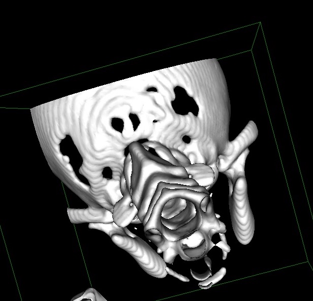 Echter de tweede abnormaliteit is dat bij kleinere honden de ruimte die het achterhoofd heeft (de zogenaamde fossa cranii caudalus) veel kleiner is dan bij die grotere honden (Shaw et al., 2012). En daar gaat het nu wringen: de kleine hersenen zijn groter terwijl de ruimte kleiner is. En vaak is bij de kleinere hond ook de vorm van het achterhoofdsgat abnormaal groot. Soms ontbreken zelfs delen van de schedel waardoor de kleine hersenen nu makkelijk gaan uitpuilen (Rusbridge, 2007). Zie ook figuur 3.
